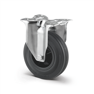 Fasthjul, Gaffel tillverkad av pressat stål, zinkkromaterad, blå kromaterad, hjulaxel med mutter, fästplatta.